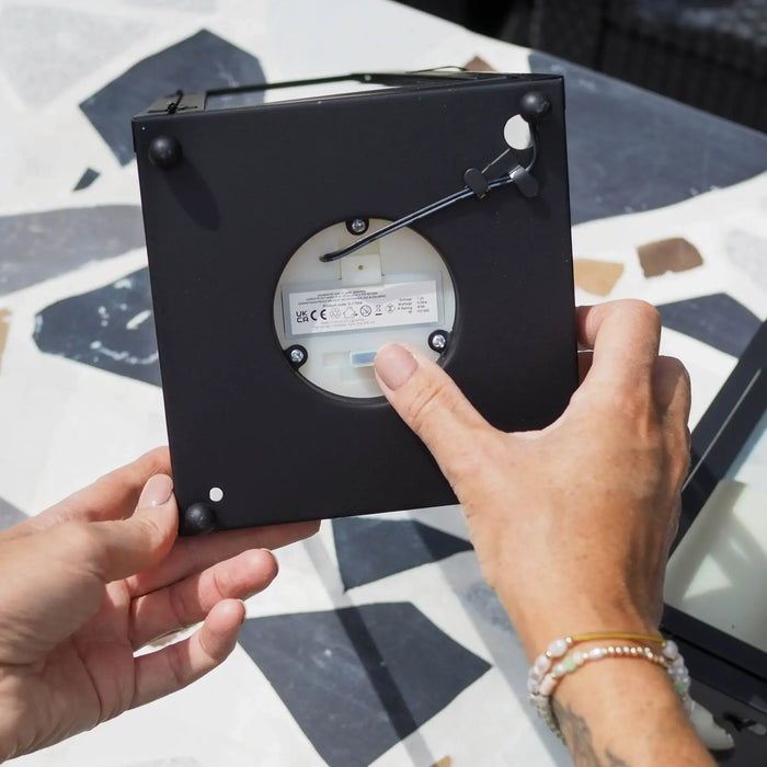 Assurez-vous que tous les interrupteurs sont en position ON pour que la batterie puisse commencer à se charger. En général, l'interrupteur se trouve sur le panneau solaire lui-même ou bien, à la base pour certains articles comme les lanternes. Une fois les lampes en position ON, placez-les dans un endroit ensoleillé en veillant à ce que le panneau solaire soit en plein soleil et puisse absorber les rayons du soleil. En fonction du type d'éclairage, vous aurez peut-être besoin de fixer le panneau au sol, l'attacher à une clôture ou à un poteau pour vous assurer qu'il est dans la meilleure position possible pour capter le soleil.