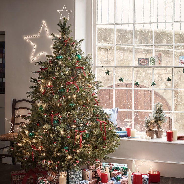 Opter pour une palette de couleurs neutres est une merveilleuse façon de créer une atmosphère chaleureuse et conviviale dans votre maison. Pour souligner la nostalgie de Noël, choisissez des guirlandes lumineuses blanc chaud, cela vous permettra de répandre une lueur douce et réconfortante dans tout votre espace et apportera également une touche romantique à vos soirées d'hiver. Si vous êtes un adepte de la décoration minimaliste, les boules blanches, dorées et champagne sont parfaites pour décorer votre arbre car elles donnent un aspect classique et familier à votre espace. Elles s'accordent parfaitement avec les guirlandes lumineuses blanc chaud et conviennent à tous les goûts. Pour couronner le tout, il ne vous manque plus qu'une étoile dorée à placer au sommet de votre arbre et le tour est joué.