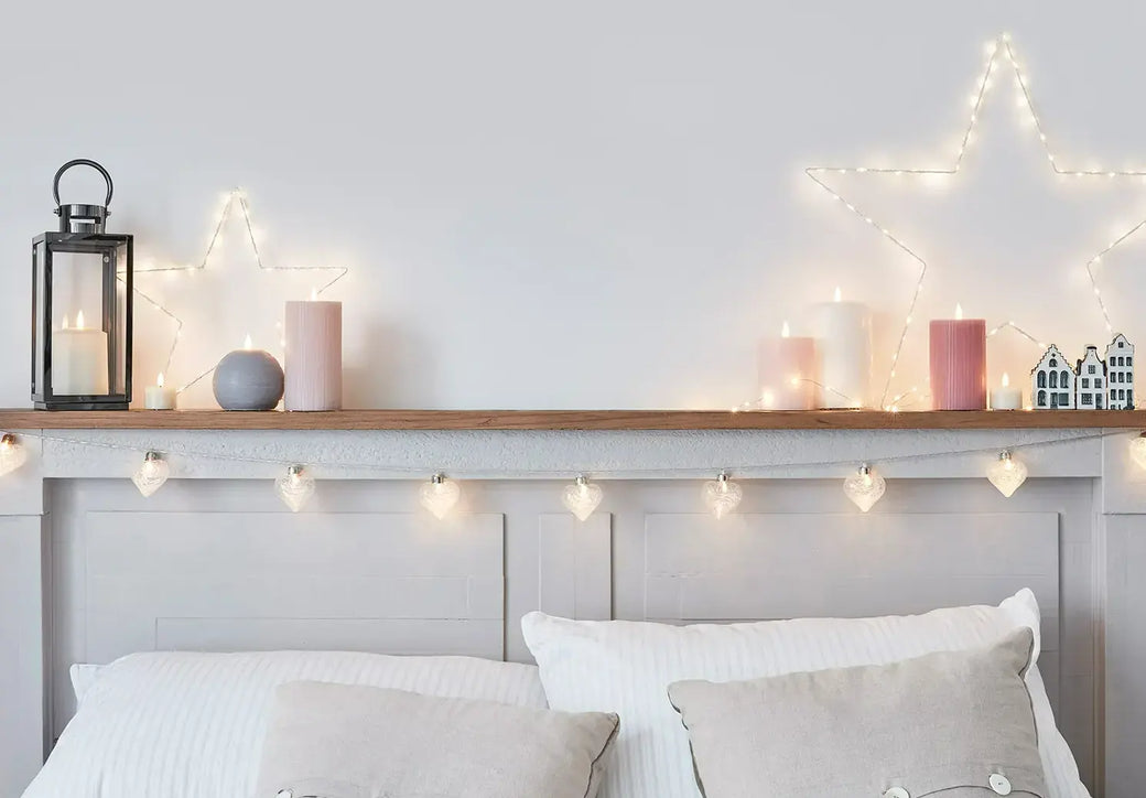 La meilleure façon d'ajouter une touche chaleureuse & apaisante à votre chambre est de créer un mur de lumière féerique. Les rideaux lumineux ajoutent un éclat simple mais élégant derrière votre lit pour illuminer votre pièce tous les soirs. Vous pouvez également créer un mur de photos pour une fonctionnalité personnelle et élégante. Stylisez simplement vos guirlandes lumineuses en forme de zigzag et attachez vos photos avec des pinces aux lumières pour vous remémorer vos merveilleux souvenirs.