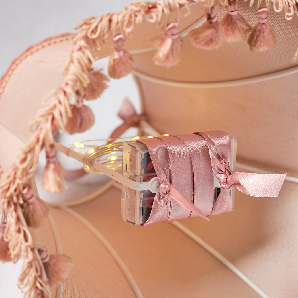 Fixez le boîtier à pile de la guirlande lumineuse à la base du cadre de l’abat-jour à l’aide d’un deuxième morceau de ruban pour le maintenir en place.