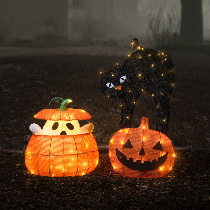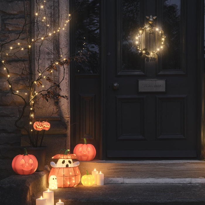 Suspendus à une branche, alignés le long de l’allée ou installés près de la porte, les décorations en forme de fantômes lumineux connaissent toujours un grand succès. Ils créent un jeu de lumière intrigant, accueillent vos visiteurs avec une pointe de frisson… et peuvent être réutilisés année après année grâce à leur étanchéité.