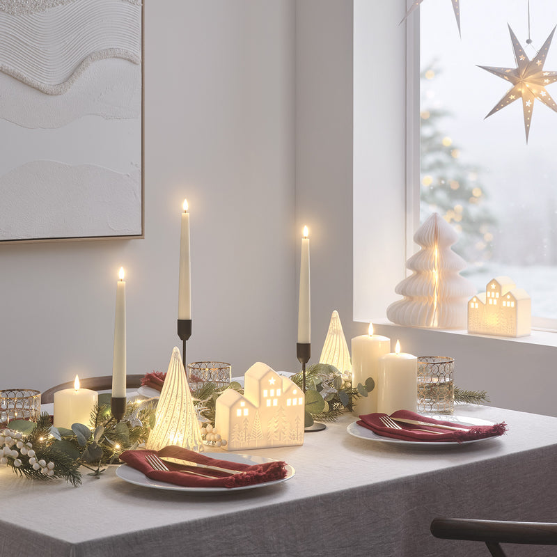 RETOURS SOUS 30 JOURSApportez une touche d'élégance hivernale à votre décor de Noël avec notre ensemble de 3 sapins artificiels enneigés de 21 cm. Imitant parfaitement la nature en hiver, ces sapins reproduisent l'apparence d'une forêt enneigée grâce à leur tronc en bois et leur feuillage artificiel de qualité. Idéals pour créer une ambiance de Noël nordique, ces petits sapins peuvent être disposés sur un rebord de fenêtre, accompagnés de bougies TruGlow® et d’autre décorations lumineuses. Insufflez à votre intérieur une atmosphère chaleureuse et naturelle en intégrant ces sapins à votre décor hivernal.